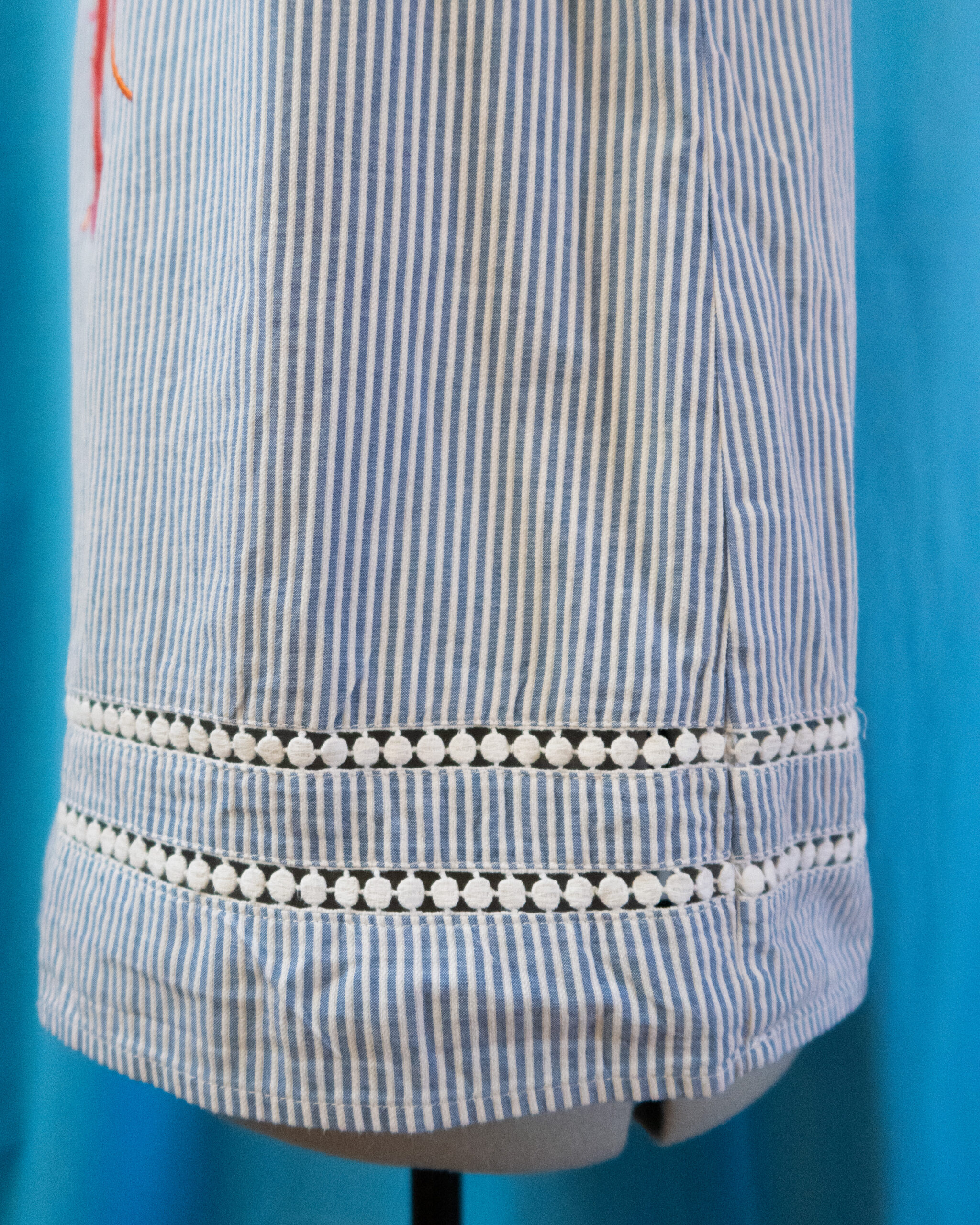 Top léger en coton avec petites broderies anglaises dans le bas. Coupe loose avec petits boutons dans le dos.